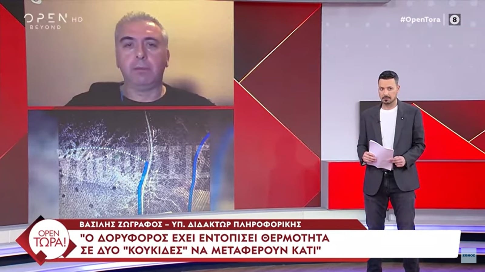 Ο Βασίλης Ζωγράφος μίλησε για το πώς λειτουργούν οι δορυφόροι και τη σημασία τους στην ανάλυση δεδομένων. Όπως ανέφερε, πρόκειται για δίδυμους δορυφόρους που σκανάρουν τη γη κάθε πέντε ημέρες, χρησιμοποιώντας έναν εξειδικευμένο πολυφασματικό φακό που καλύπτει 13 διαφορετικά κανάλια. Αυτή η τεχνολογία επιτρέπει την παρακολούθηση των δραστηριοτήτων στην επιφάνεια της γης, δημιουργώντας πολύτιμα στοιχεία για την κατανόηση των γεγονότων που οδήγησαν στην τραγική κατάληξη του Βασίλη Καλογήρου.