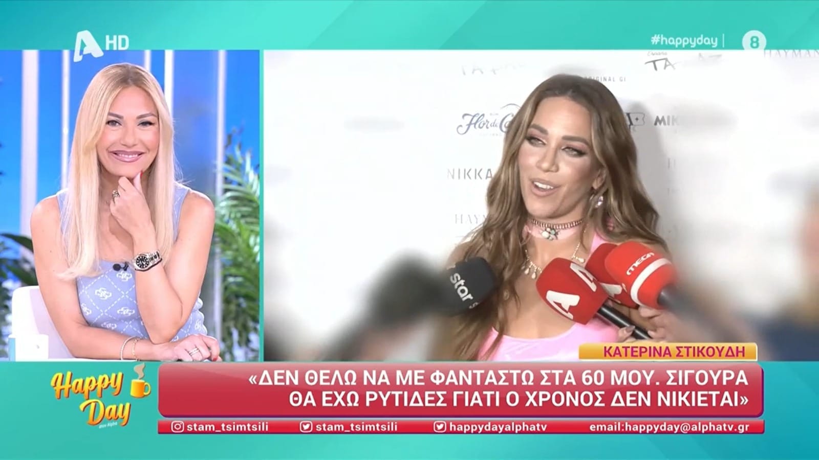 Η κατερίνα στικούδη δεν διστάζει να μοιραστεί τις σκέψεις της και για το μέλλον. Παρά την αναπόφευκτη γήρανση, δηλώνει ότι δεν επιθυμεί να φανταστεί τον εαυτό της στα 60 της χρόνια, αναγνωρίζοντας την επιρροή του χρόνου πάνω στην εμφάνιση. «Σίγουρα θα έχω ρυτίδες», είπε, ωστόσο τονίζει ότι μακάρι να μεγαλώσει να φτάσει και στα 60 και στα 70 και στα 80 και να καμαρώνει τα παιδιά της.