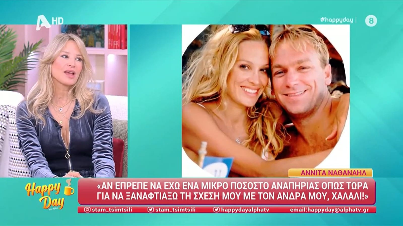 Η Αννίτα Ναθαναήλ πρόσφατα έδωσε μια συνέντευξη που συγκίνησε το κοινό. Ο διάλογος της με τη Σταματίνα Τσιμτσιλή στο πλατό του Happy Day, την Μεγάλη Τρίτη, αποδείχθηκε ιδιαίτερα θερμός και ενδιαφέρον. Η Ναθαναήλ μοιράστηκε στιγμές από την προσωπική της ζωή, περιγράφοντας τις προκλήσεις που αντιμετώπισε, ειδικά όσον αφορά τη σχέση της με τον άντρα της.