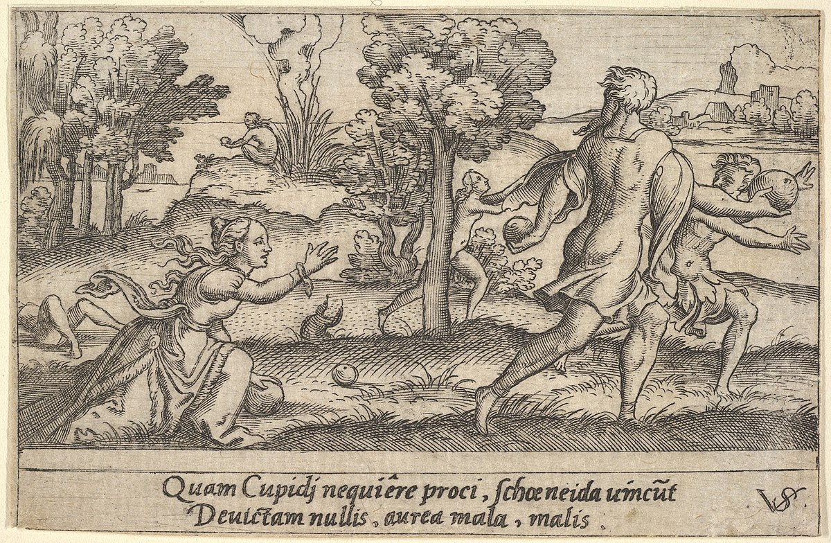 Η πιο γνωστή ιστορία της Αταλάντης είναι ο αγώνας δρόμου που έθεσε ως όρο για τον γάμο της. Όταν ο πατέρας της την αναγνώρισε και επέμεινε να παντρευτεί, η Αταλάντη, πιστή στην όρκο παρθενίας της προς την Αρτέμιδα, δήλωσε ότι θα παντρευόταν μόνο όποιον μπορούσε να την ξεπεράσει σε έναν αγώνα δρόμου, ενώ οι ηττημένοι θα πέθαιναν. Πολλοί μνηστήρες έχασαν τη ζωή τους, μέχρι που ο Ιππομένης (ή Μελανίων), με τη βοήθεια της Αφροδίτης, χρησιμοποίησε τρία χρυσά μήλα για να την αποσπάσει κατά τη διάρκεια του αγώνα. Η Αταλάντη, μαγεμένη από τα μήλα, σταμάτησε για να τα μαζέψει, χάνοντας τον αγώνα και, τελικά, την ελευθερία της.