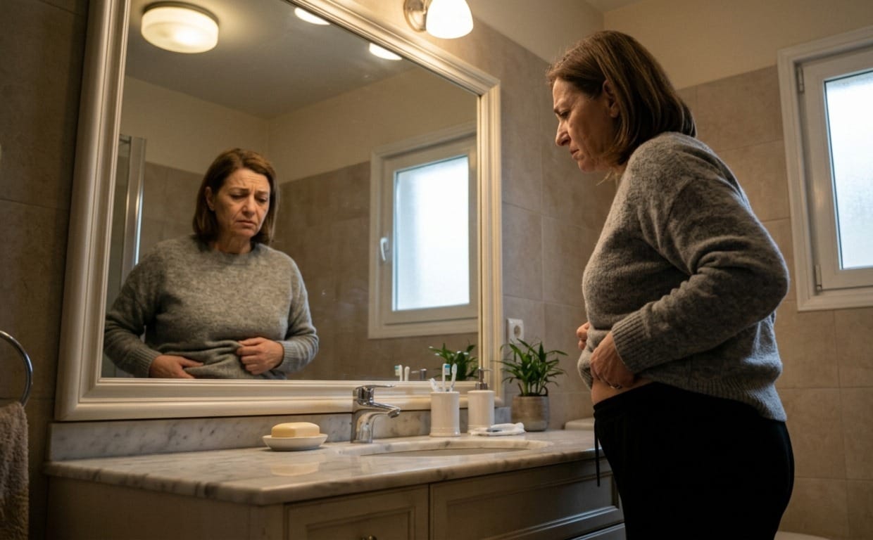 - Άλλοι παράγοντες: Κακή ποιότητα ύπνου (από εξάψεις/νυχτερινές εφιδρώσεις), υψηλή κορτιζόλη από στρες, μειωμένη φυσική δραστηριότητα, γενετικοί παράγοντες και αλλαγές στη μικροβιακή χλωρίδα του εντέρου.