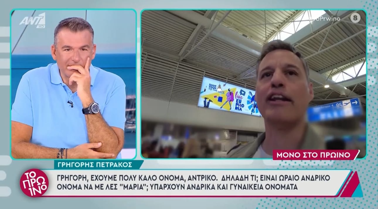 Ο Γρηγόρης Πετράκος είπε στον Γρηγόρη Μπάκα: «Γρηγόρη, έχουμε πολύ καλό όνομα, αντρικό. Δηλαδή τι; Είναι ωραίο αντρικό όνομα να με λες Μαρία; Υπάρχουν αντρικά και γυναικεία ονόματα».