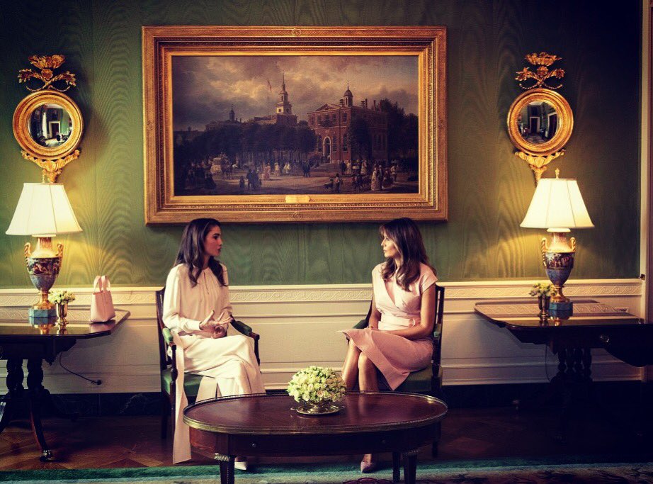 Οι ρίζες της φιλίας τους χάνονται στα 2017 και 2018, κατά την πρώτη θητεία του Trump. Τον Απρίλιο του 2017, η Rania και ο βασιλιάς Abdullah II επισκέφθηκαν τον Λευκό Οίκο, όπου η Melania τις υποδέχθηκε θερμά. Λίγους μήνες αργότερα, τον Ιούνιο του 2018, επανέλαβαν την επίσκεψη, με κοινή τους δράση σε σχολείο κοριτσιών στην Ουάσινγκτον, προωθώντας την εκπαίδευση. Τότε, η Melania έγραψε στο Instagram: «Μια υπέροχη επίσκεψη με τον βασιλιά και τη βασίλισσα της Ιορδανίας. Ο πρόεδρος και εγώ χαρήκαμε να τους καλωσορίσουμε ξανά στον Λευκό Οίκο». Αυτές οι συναντήσεις όχι μόνο ενίσχυσαν τις διπλωματικές σχέσεις ΗΠΑ-Ιορδανίας, αλλά και έθεσαν τις βάσεις για κοινές πρωτοβουλίες σε θέματα όπως η παιδική ευημερία, που η Rania προωθεί χρόνια τώρα μέσω του Queen Rania Foundation for Education and Development.
