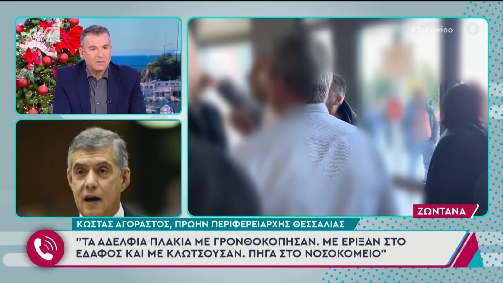 Ο Αγοραστός δήλωσε στον τηλεοπτικό σταθμό ANT1 ότι οι δράστες, τα αδέρφια Πλακιά, τον γρονθοκόπησαν και τον κλωτσούσαν ακόμη και όταν είχε πέσει στο έδαφος. Η επίθεση εξελίχθηκε γρήγορα σε ένα επεισόδιο, που τον οδήγησε στο εφημερεύον γενικό νοσοκομείο Λάρισας για ιατρική περίθαλψη.
