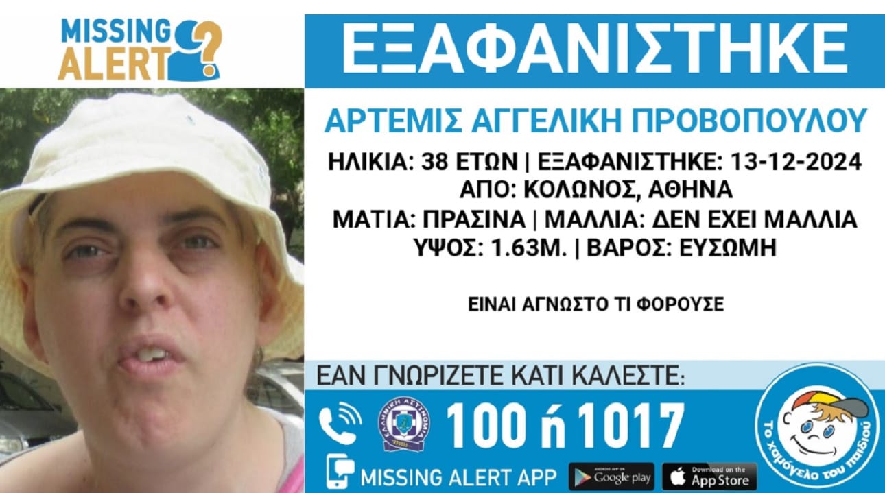 Στις 13 Δεκεμβρίου 2024, η 38χρονη Άρτεμις – Αγγελική Προβοπούλου εξαφανίστηκε από τον Κολωνό στην Αθήνα. Η οικογένειά της, ανησυχώντας για την ασφάλεια της, έθεσε το θέμα στις αρχές και απευθύνθηκε στο «Χαμόγελο του Παιδιού» για βοήθεια.