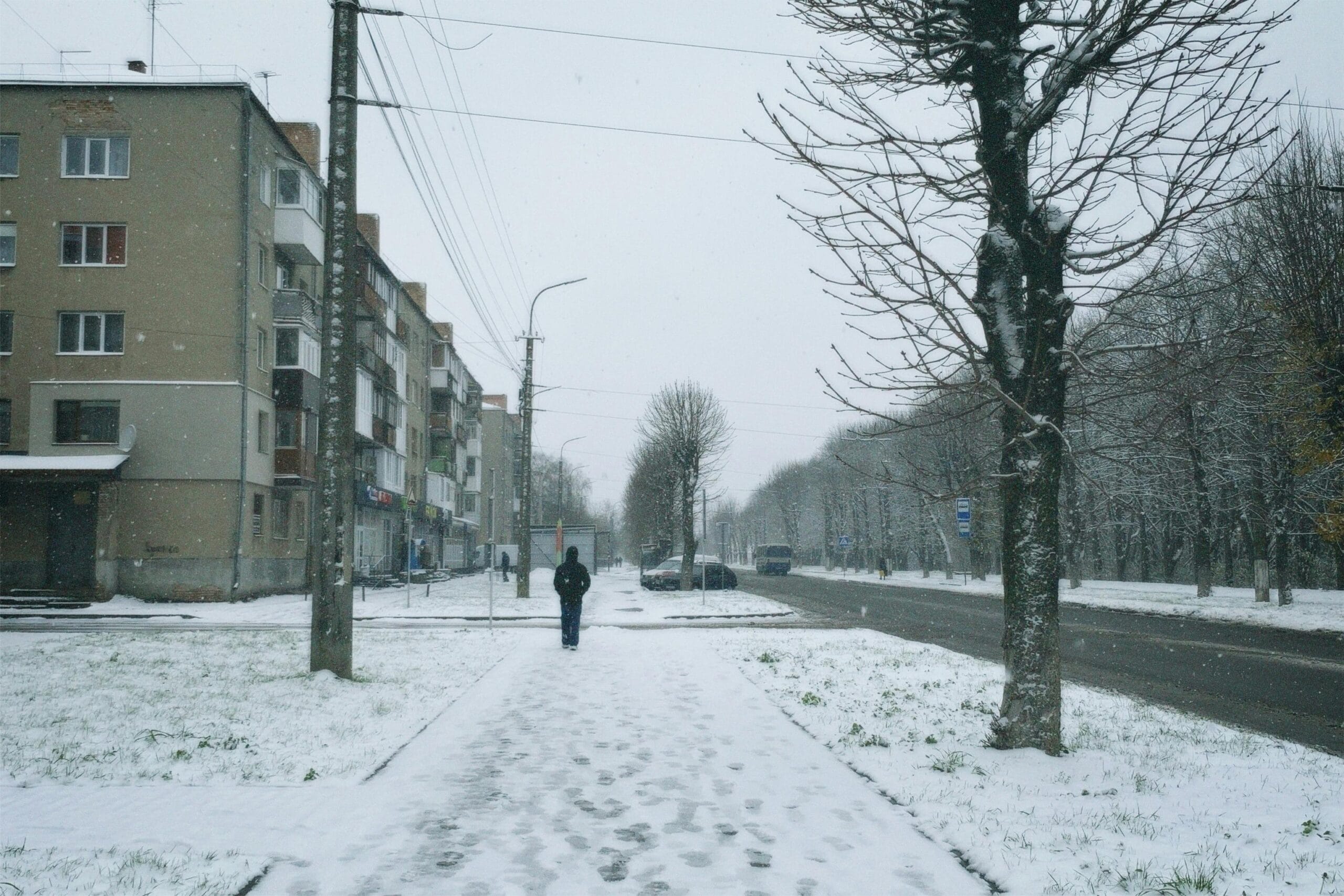 - Μεγάλους σωρούς χιονιού στα προάστια, όπου τα αυτοκίνητα έχουν καλυφθεί με πολλά εκατοστά χιόνι.